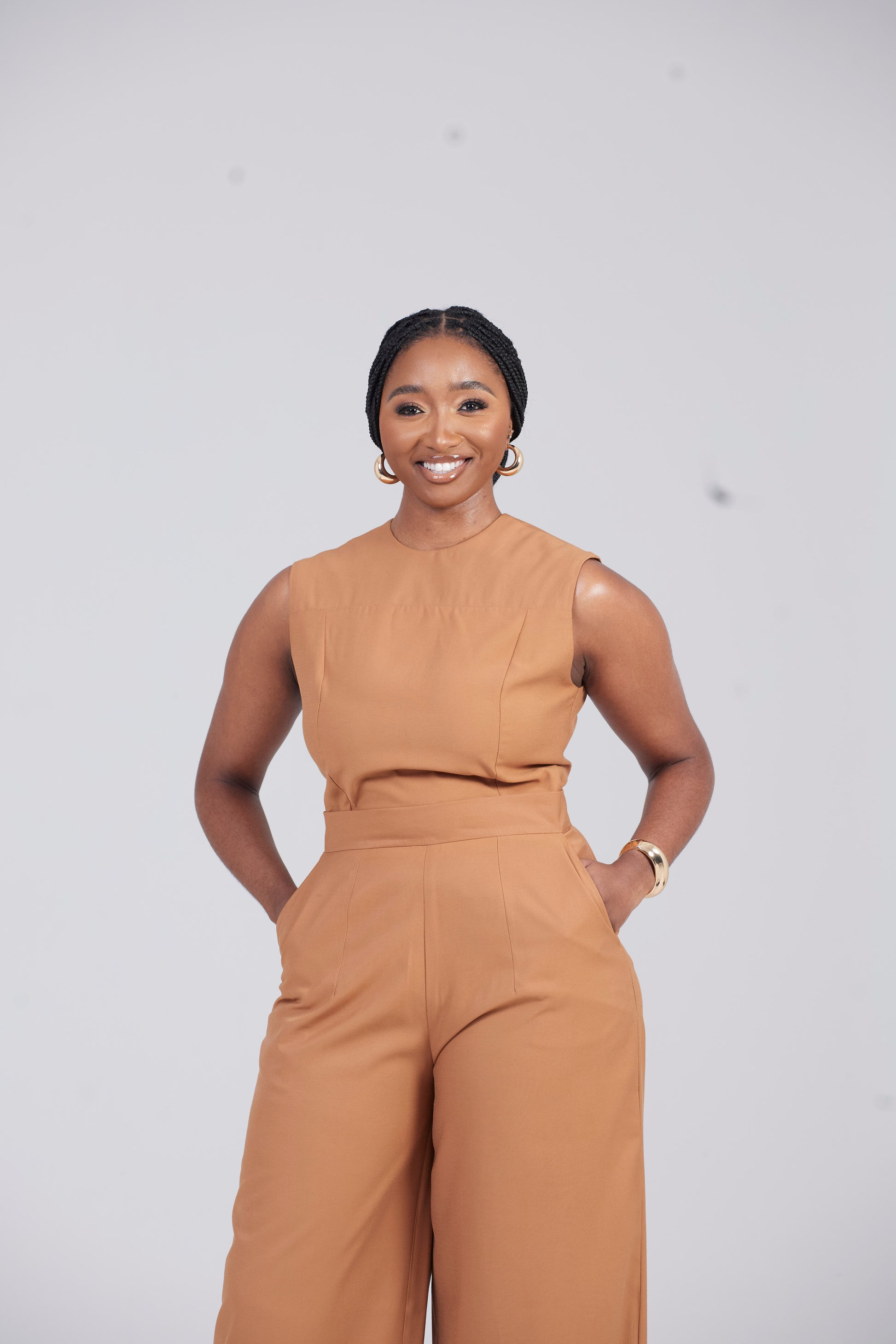 Elevate your workwear with our Eden Blouse in rich Caramel. This sleeveless, tailored blouse offers a perfect fit, making it an essential piece for your summer wardrobe. Pair it effortlessly with our Eden Trousers for a sophisticated and polished look. Upgrade your style with our premium Eden set.